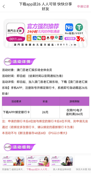 下载注册以后综合活动一直往下滑就看到了这个需要充值任意一笔我存了10申请到了