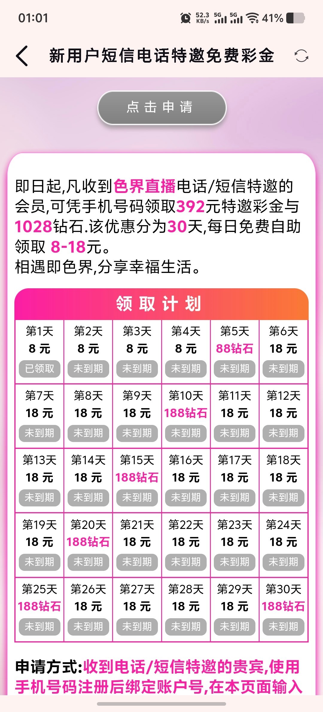 活动第一个自助领取,不充值领个几天后面肯定领不了,白嫖就行了