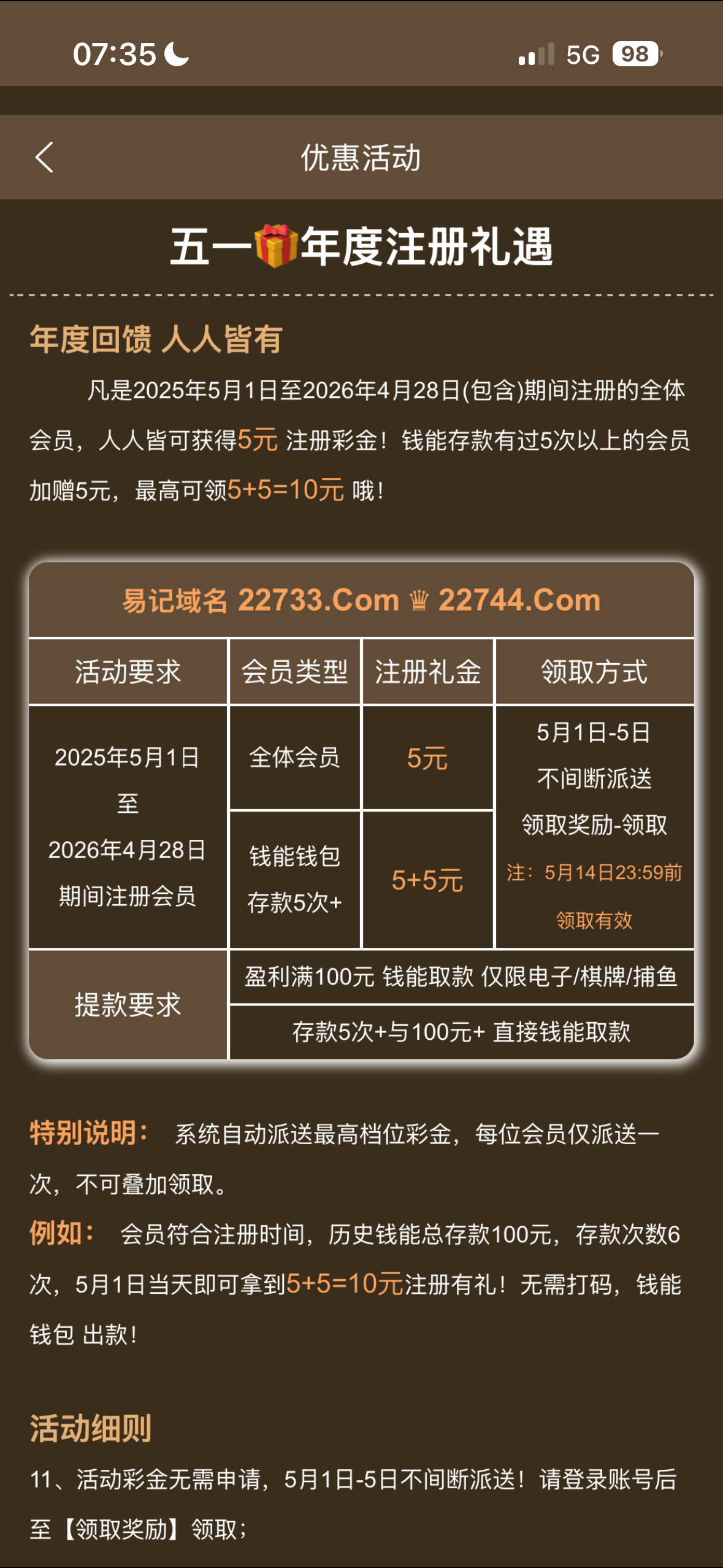历史注册彩金